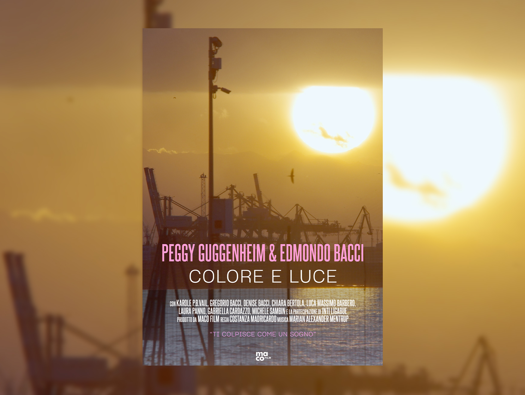 Un documentario che riporta ad una Venezia di altri tempi, tra le calli negli anni ’50, dove avviene un incontro destinato a lasciare il segno: quello tra l’artista ancora sconosciuto Edmondo Bacci e la leggendaria collezionista americana Peggy Guggenheim. Introverso e timido, Edmondo Bacci emerge nel film attraverso il dialogo con Peggy Guggenheim e le testimonianze dei più importanti curatori e collezionisti che vivono nella città lagunare. Il documentario riscopre l’opera spaziale di Edmondo Bacci, esplorando il suo immaginario astrale ricco di colore, energia, esplosioni e luci. Un artista ammirato da Peggy Guggenheim, nel contesto del movimento spazialista veneziano del dopoguerra.